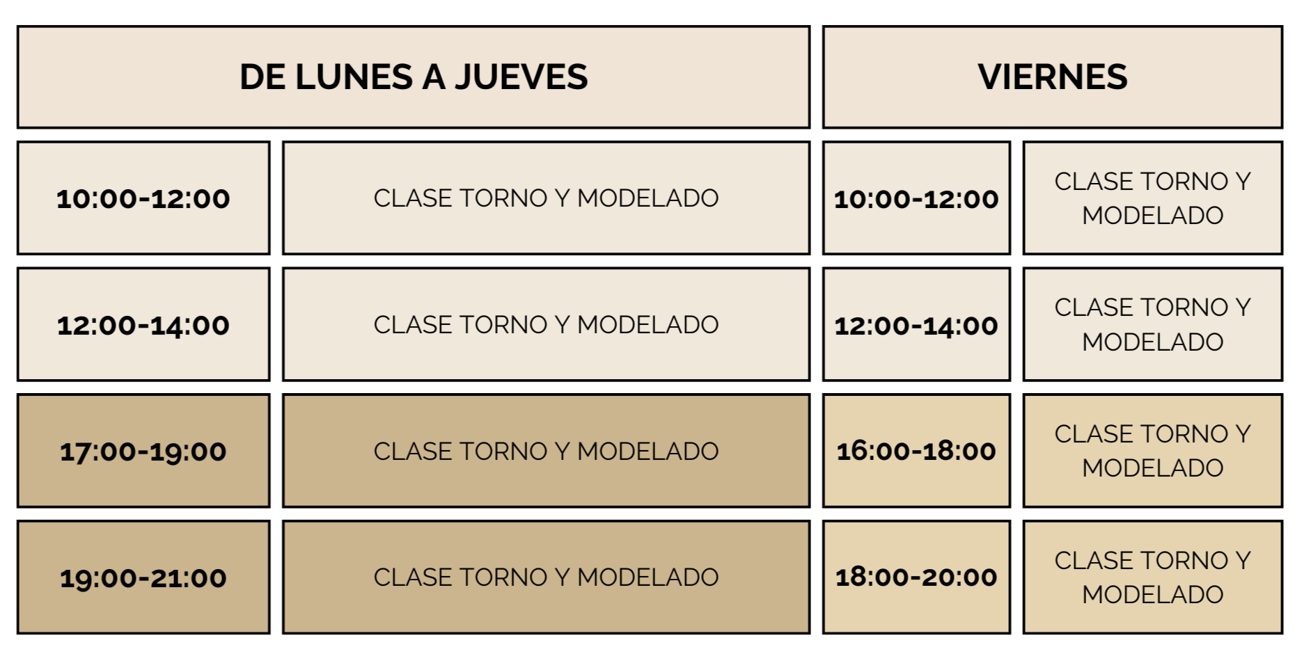 Podrás acceder a las clases mensuales 6 veces. Tanto a torno como a modelado.